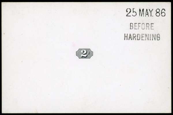 1887-1900 Jubilee 2d die proof of the duty plate on glazed card (92x60mm) endorsed BEFORE HARDENING dated 25 MAY. 86, fine. SG 199var