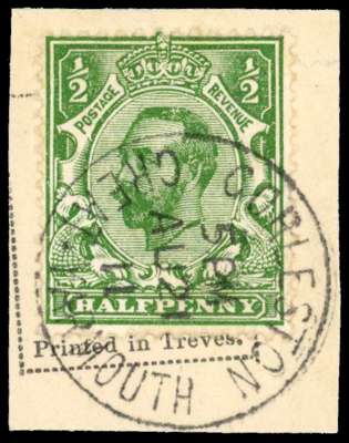 1911 1/2d green Downey Head Error Perforation 14 on piece