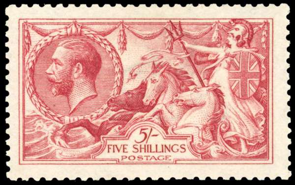 1915 5/- carmine, unmounted o.g. with good centring, fine. SG 409var £1100