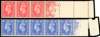 1941-42 Pale Colours, 1d pale scarlet and 2½d light ultramarine, both strips of six showing dry print