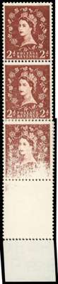 1955-58 St Edward's Crown 2d red-brown, lower marginal vertical strip of ten showing spectacular dry print