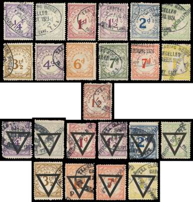 Tea Clearing House: Used Collection (41) all different, on 2 stock pages comprising unoverprinted ¼d to 1s2d (13), Triangle overprints ¼d to 1s (10), Diamond overprints ½d to 2s6d (11), and zigzag overprints in RED ½d, 1d, 1½d, 2d, 3d 6d and 9d, the red opts a very rare group.