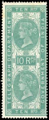 India Telegraph. 1869-78 10r dull blue-green (Die I), mINT S.G. T13, £850