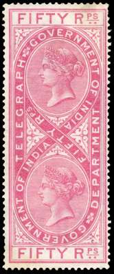 India Telegraph. 1869-78 50r rose, Die II, first wmk mint S.G. T20, £850