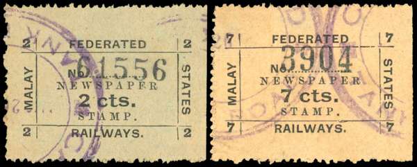 Malaya FMS Railway Newspaper Stamps 2c & 7c Used