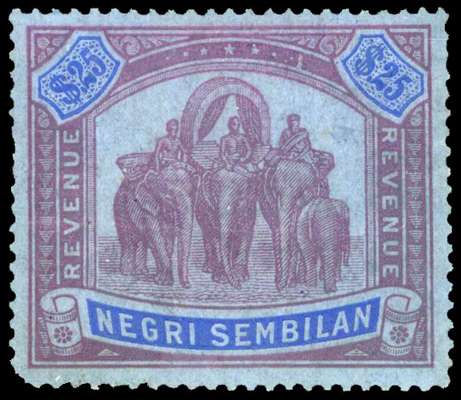 Malaya Revenue Negri Sembilan Elephant 1936 $25 purple and blue on blue,