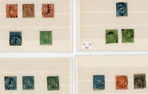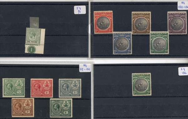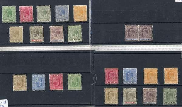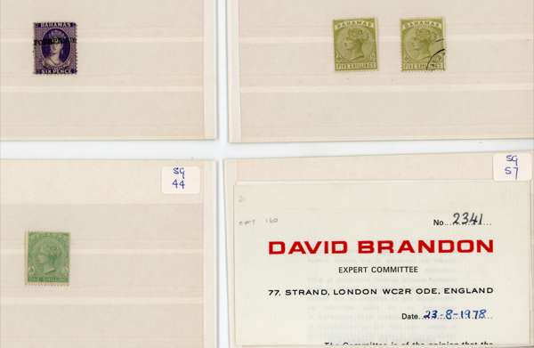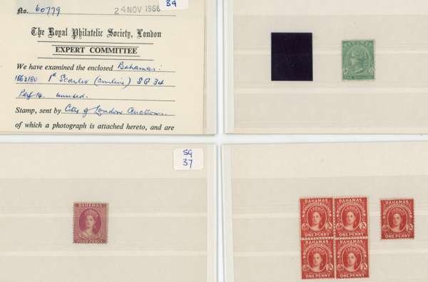 1861-1942 mint and used selection arranged on stockcards including mint 1861-62 rough perf 14 to 16, 1d lake used, 1862 no wmk 1d carmine-lake perf 11½, (no gum), perf 13 1s lavender-grey (no gum), 1863-77 perf 12½ 1s blue-green (faults with part og), perf 14 1d scarlet (aniline), redistributed gum (RPS Certificate-1966), 1882 Crown CA, perf 12 1d scarlet-vermilion (4, with a block of four), 1883 surcharge ‘FOURPENCE’ on 6d deep violet (small part og), 1884-90 5s sage-green (2, one used), £1 Venetian red (3, one used with Brandon Certificate-1978), 1902-07 to £1 plus 5s pair, 1912-19 to £1 with an additional £1 with plate number ‘1’. Condition mixed. (69)