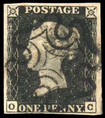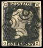 1840 1d black Plate 4 (OC) four margin example cancelled with crisp black MC SG 2