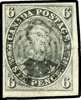 1852-57 Handmade wove paper, varying in thickness, imperf 6d greenish grey, close to very large margins
