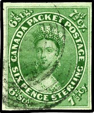 1852-57 7½d yellow-green, imperf, good to large margins, cancelled
