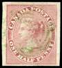 1852-57 ½d deep rose, imperf, close to very large margins, lightly cancelled in green. Fine. SG 17