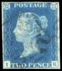 1840 2d blue (IK) four margins, cancelled by light MC in black SG 5