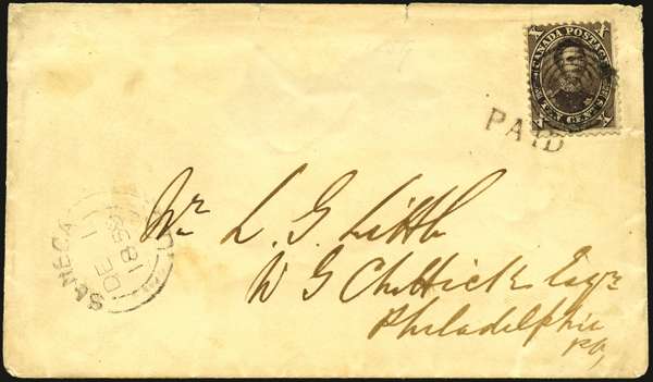 Canada 1859 cover from Seneca to Philadelphia 10c 'Prince Consort' SG 33