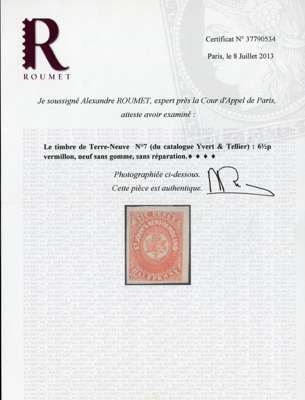 1857 6½d scarlet-vermilion, unused no gum with fine appearance. Roumet certificate (2013). SG 7