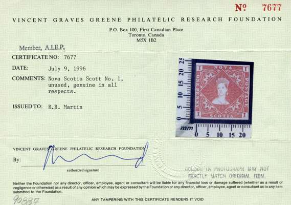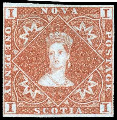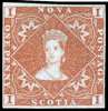 1853 1d red-brown, four even margins, unused no gum. Fine appearance. Philatelic Research Foundation Certificate (1996). SG 1