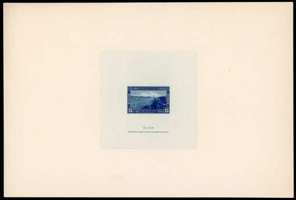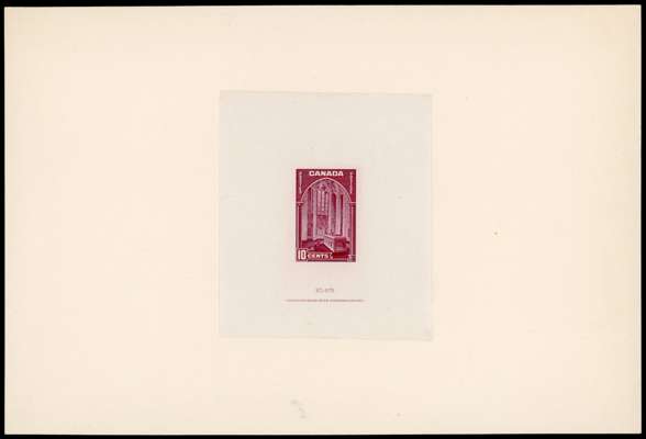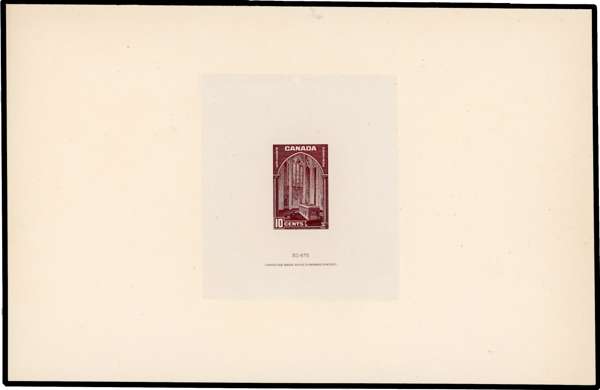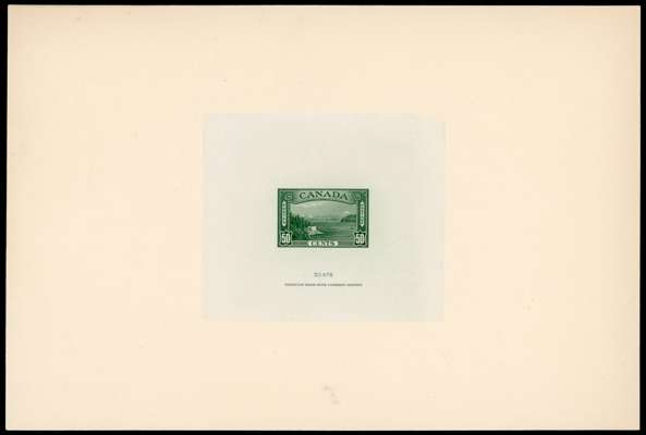 1938 Pictorial large die proofs on India paper (approx. 86x75mm), die sunk on card (230x150mm), set of 6 with both 10c shades, each with die no. and Canadian Bank Note Company imprint. Fine and scarce. SG 363/367var, Ex ABNC Archives.