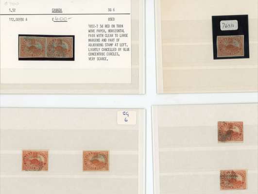 1852-59 mainly used selection arranged on stockcards including ½d (2), 3d (21, with two pairs and one unused), 10d (2), 1858-59 ½d and 1859 new currency 10c (3) and 17c, Condition very mixed with some fine. (31)