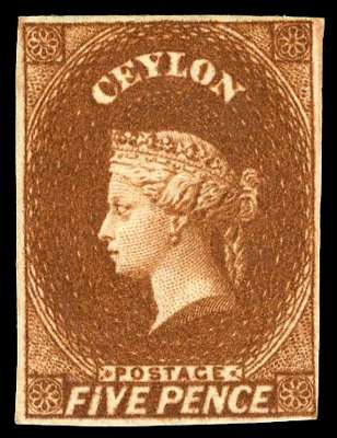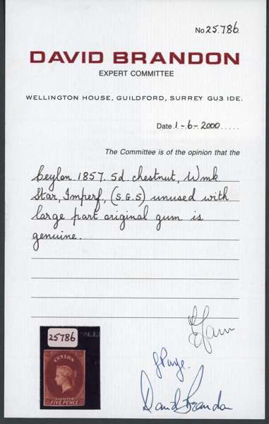 1857-59 5d chestnut, four close to good margins, large part o.g. characteristic gum wrinkles, otherwise fine, a difficult stamp. Brandon Certificate (2000) SG 5 £1600