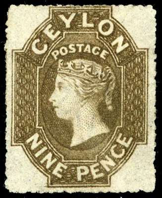 1861-64 9d olive-sepia, Wmk star, rough perf 14-15½, fine unused without gum, still very fine and scarce. A most collectable example. SG 33b £900