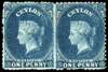1867-70 1d dull blue Wmk type 6, (wmk reversed) horizontal pair, large part o.g. typical perfs and trivial gum wrinkles, otherwise fine. Original hinge preserves provenance. Ex Harmers (28.11.1960) SG 63ax £650+