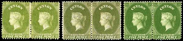 Ceylon SG 66ax,b,c listed shades on 5d in mint pairs