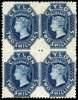 1867-70 2/- deep blue, Wmk type 6, in block of four, brilliant o.g. with lower pair unmounted, rare in such lovely condition. SG 72b