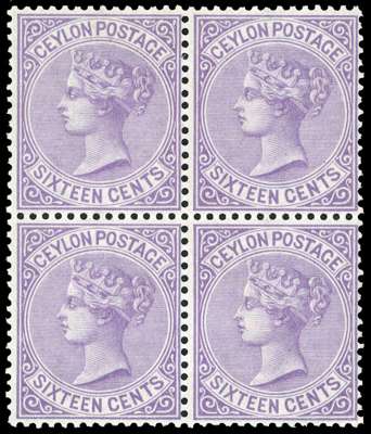 1872-80 16c pale violet, Wmk CC, in block of four, brilliant large part o.g. very fine, a splendid and rare multiple. SG 126 £600++