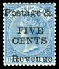 1885 5c on 36c blue Wmk CC, type 21 local surcharge (pos. 2 of the setting) large part o.g. very fine example with exceptional perfs, centring and colour. SG 156 £300