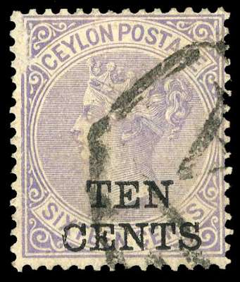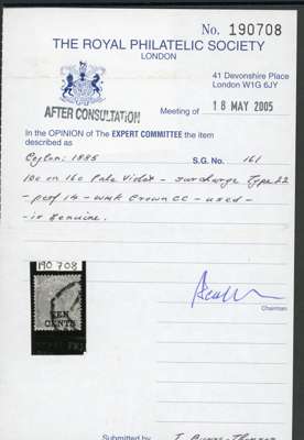 1885 10c on 16c pale violet, Wmk CC, type 22 local surcharge, used by part ‘A’ numeral, surface abrasion to upper left, otherwise fine, a collectable example of this rare stamp. RPSL Certificate (2005) SG 161 £5000