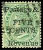 FORGERIES: 1885 forgery of the 5c on 24c green Wmk CA, surcharge type 21, ‘used’ formerly listed in ‘Part I’ as SG 181, long since deleted, scarce.