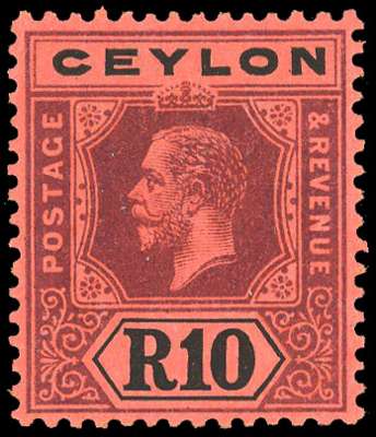 1912-25 Wmk MCA 10r purple & black and red, Die I, variety WATERMARK INVERTED, unmounted o.g. very fine. SG 318aw £300