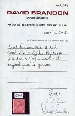 1912-24 1d Pink "Royal Cypher". Very fine fresh unused o.g. example A scarce shade. Spec. N16(10). 2005 Brandon Cert. Cat £300.