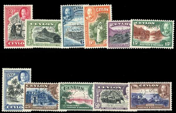 1935 Pictorial set of 11 to 1r, perf ‘SPECIMEN’ set, large part o.g. odd trivial gum wrinkles, still a fine set, with lovely fresh colours, a scarce set complete. SG 368-378s £350