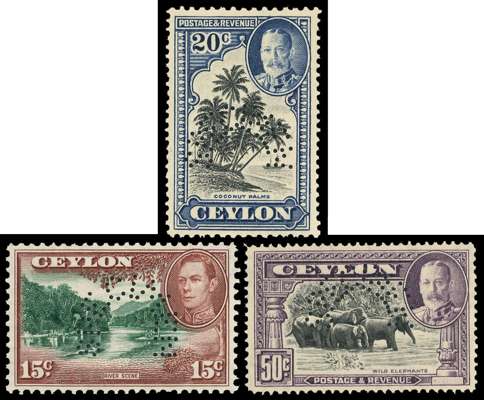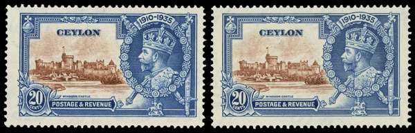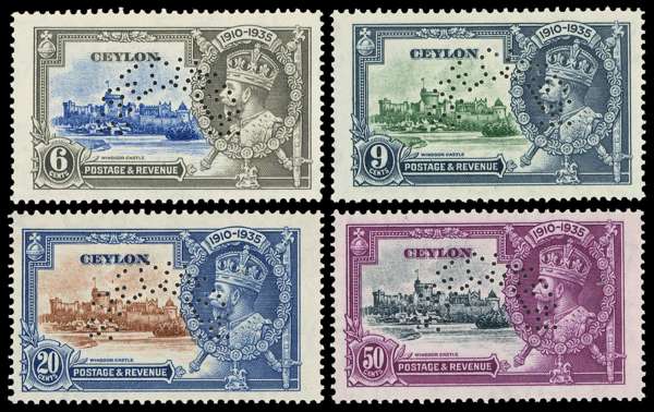 1935-36 KGV mint and used collection arranged on Hagners, including 1935-36 set to 1r, with 3c, 6c, 9c, 15c, 20c and 50c perf ‘SPECIMEN’, 1935 Silver Jubilee 6c and 9c showing varieties DIAGONAL LINE BY TURRET and DOT TO LEFT OF CHAPEL, 20c showing variety DIAGONAL LINE BY TURRET, 50c right marginal block of six with lower left stamp showing DOT BY FLAGSTAFF, and perf ‘SPECIMEN’ set, generally fair to fine condition. SG 368-382