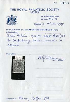 1920 1s Deep bronze-brown ‘Royal Cypher’. Superb fresh unmounted o.g. example with fabulous deep "intense" colour. A rare and popular shade. Spec. N32(10). Cat £1350. 1975 RPS Cert.