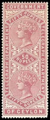 TELEGRAPHS: 1881 50r brown-rose type T13, large part o.g. slightly rounded SE corner, and faint gum yellowing, still an attractive example of this stamp with fresh colour. A rarity in unused condition. SG T21 £1600