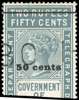 TELEGRAPHS: 1882 50c on 2r50c grey, type 55, fine used and very scarce, with just 400 surcharged. SG T60