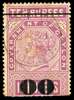 TELEGRAPHS: 1882-94 80c on 10r reddish purple, type T107 surcharge (issue 26 Sep 90) used upper half, showing error ‘00’ FOR ‘80’, very lightly cancelled by Hatton M.O. & S.B. cds for JA 31 91, slight toning and minor corner crease, still an attractive example of this rare error, probably only 100 existed. SG T112a £450
