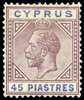 Cyprus 1921 Script wmk 45pi purple and ultramarine,'Broken bottom left triangle' S.G. 99a cat £2,750