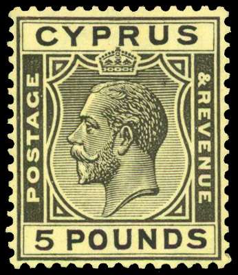 1928 £5 black on yellow, excellent colour, large part o.g. SG 117a, £3,750