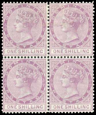 1886-90 wmk Crown CA, 1s dull magenta, block of four, fine large part og. SG 26