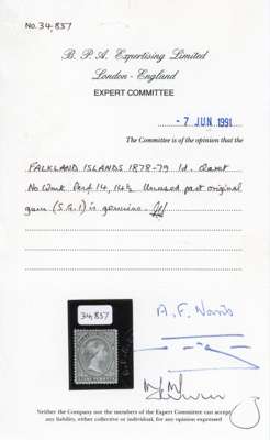 1878-79 1d claret, part og. Fine appearance. BPA Certificate (1991). SG 1