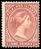 Falkland Islands 1882 1d dull claret wmk inverted and reversed with neck blemish