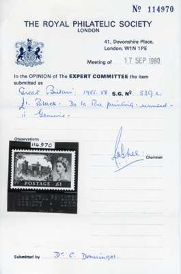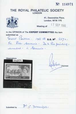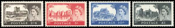 1958 De La Rue first printing Castles set of four, fine unmounted o.g. each accompanied by RPSL Certificate (1980) SG 536a-539a £600