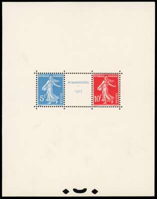 1927 Strasbourg Philatelic Exhibition 5f blue & 10f red, miniature sheet, unmounted o.g. fine. SG MS454b Yvert 242a