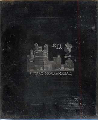 1988 £1.50 ‘Caernarfon Castle’ engraver's printing plate, (80x98mm) might prove a challenge to mount for display due to its weight (512g), otherwise a rare item. SG 1411var