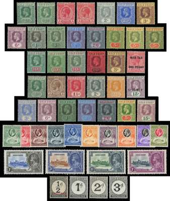 KGV range on Hagner including 1913 to 20s including extra shades/printings of 1s, 5s (2) and 10s (2), 1921 to 15s plus 15s Die I overprinted “SPECIMEN”, 1928 to 5s, 1935 S Jubilee and 1923 dues ½d overprinted “SPECIMEN” with 1d, 2d and 3d. Mixed condition, some good to fine. (52)
