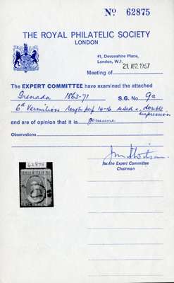 1863-71 wmk Star Star, rough perf 14 to 16, 6d vermilion showing ‘DOUBLE IMPRESSION’ and pre-printing paper fold, lightly used. RPS Certificate (1967). SG 9a