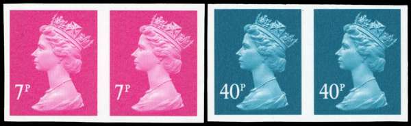 2004 7p bright magenta (2 bands) and 40p turquoise-blue (2 bands), both in horizontal imperforate pairs, fine unmounted