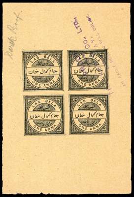 I.F.S Las Bela 1a plate proof block of four dark proof SG 8var